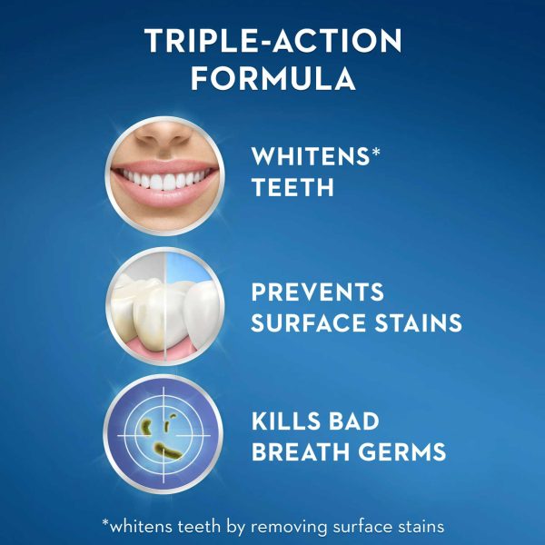 Améliorez votre routine matinale pour un sourire radieux avec le rince-bouche blanchissant Crest 3D White Glamorous White. Grâce à la technologie exclusive Whitelock de Crest, qui agit comme un protecteur blanchissant, la formation de nouvelles taches est empêchée. En seulement 7 jours*, vous verrez des résultats et obtiendrez un sourire plus blanc en éliminant les taches superficielles avec ce rince-bouche blanchissant.
